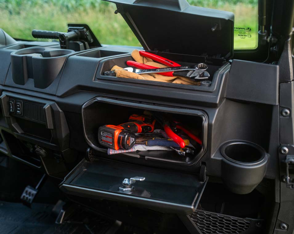 Uansett om du skal frakte utstyr, slepe en tilhenger eller kjøre med en gruppe på 6, klarer RANGER XP 1000 oppgaven. En motor med dobbelt overliggende kam (DOHC) leverer 82 hk, og kjørekontroll med tre moduser gjør det mulig å optimalisere kraften for den aktuelle jobben.